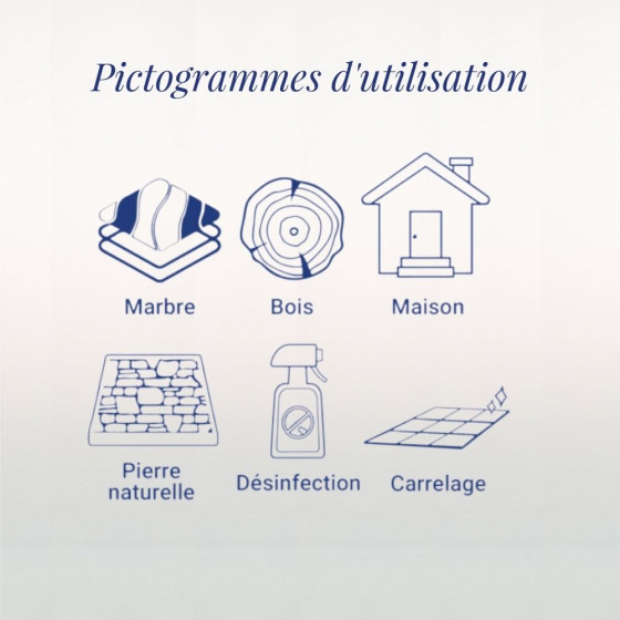 • Polyvalent : adapté à toutes les surfaces et sols, y compris plans de travail, meubles et poignées