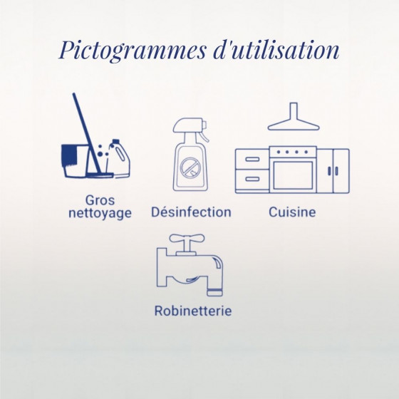 Formulation Polyvalente : conçu pour nettoyer et désinfecter toutes les surfaces de la cuisine, y compris les plaques de cuisson, réfrigérateurs, hottes et éviers.