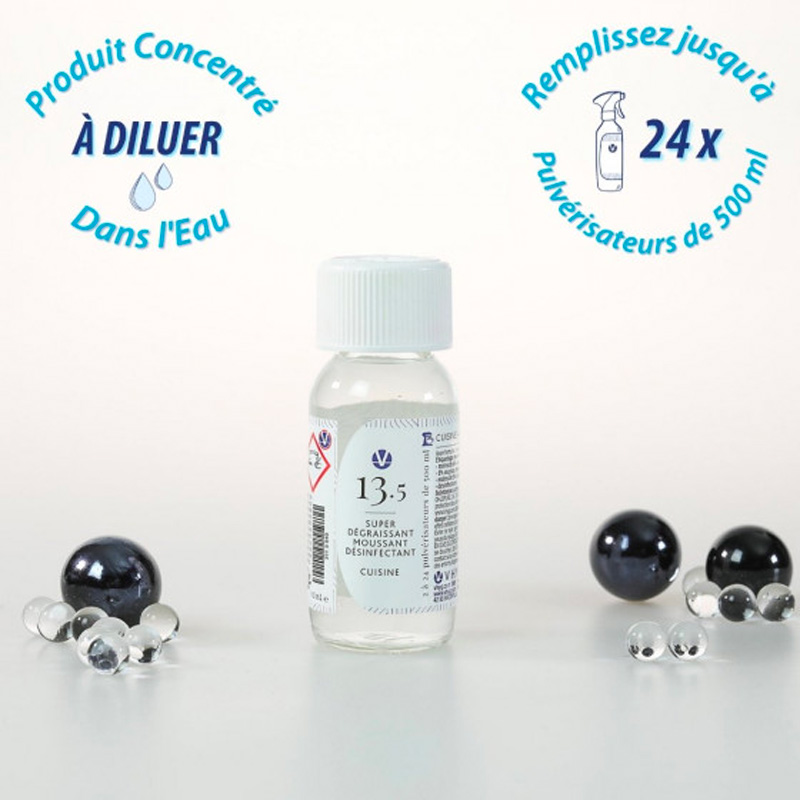 Le Super Dégraissant Désinfectant Cuisine N°13.5 offre une solution révolutionnaire pour le nettoyage de votre cuisine, alliant une puissance dégraissante exceptionnelle à une action désinfectante exhaustive. Sa formule ultra-concentrée, spécialement conçue pour le nettoyage en profondeur, est efficace sur tous types de surfaces et ustensiles, garantissant ainsi une cuisine saine et propre.